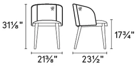 The armchair's proportions are carefully balanced to offer the support of an armchair while maintaining the scale necessary for a dining environment. The exposed wooden frame, available in sophisticated finishes like Smoke or Canaletto Walnut, exudes a sense of organic warmth and finesse. Its adaptability makes it suitable for "diverse compositions," serving equally well as a head-of-table statement piece or as a stylish guest chair in a professional setting.