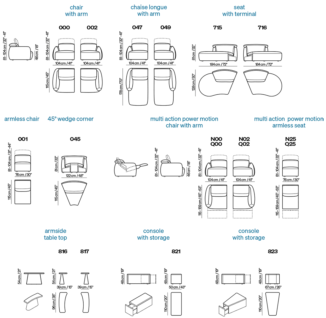 This is the whole range of leather and fabric covers we have. Availability may differ depending on the product and area. Check out the newest possibilities for the product of your choice at italian-interiors.com.