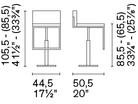 Featuring sleek square lines and a predominantly metal design, Even Plus is perfect for modern environments. Its recessed structure, seamlessly integrated with the backrest and footrest, offers both functionality and visual appeal. This stool is equipped with a swivel mechanism and a gas piston for height adjustment, complemented by a comfortable padded seat. |