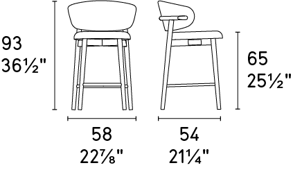 Discover the OLEANDRO padded stool with a wooden base that delivers sheer comfort. Its seat and backrest feature generous soft padding available in various upholstery options. An added touch of style can be found at the end of the wooden backrest frame, masterfully crafted into a flattened tip. Experience both comfort and elegance with OLEANDRO. |