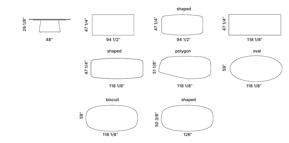 | The Napoleon family of tables comes in numerous versions to meet the most varied aesthetic needs and optimally furnish a modern dining room.The central base has been produced using a cutting-edge ceramic modelling technique, which marks the boundary between before and after on the spectrum of possible outcomes offered by this ever more flexible material. This is the first appearance, in fact, of curved slabs in the Keramik collection, sculpted to create bases for ceramic tables with gracefully curved shapes and rounded edges. Tables with a central Napoleon base are joined by two perfectly symmetrical hubs. One detail is noticeable on the short side of the plinth: the recessed vertical groove covered in ceramic, which breaks up the otherwise uniform surface. The result is a modern ceramic table that embodies a new contemporary aesthetic, combining classic finishes inspired by natural marble with previously unseen production techniques. |